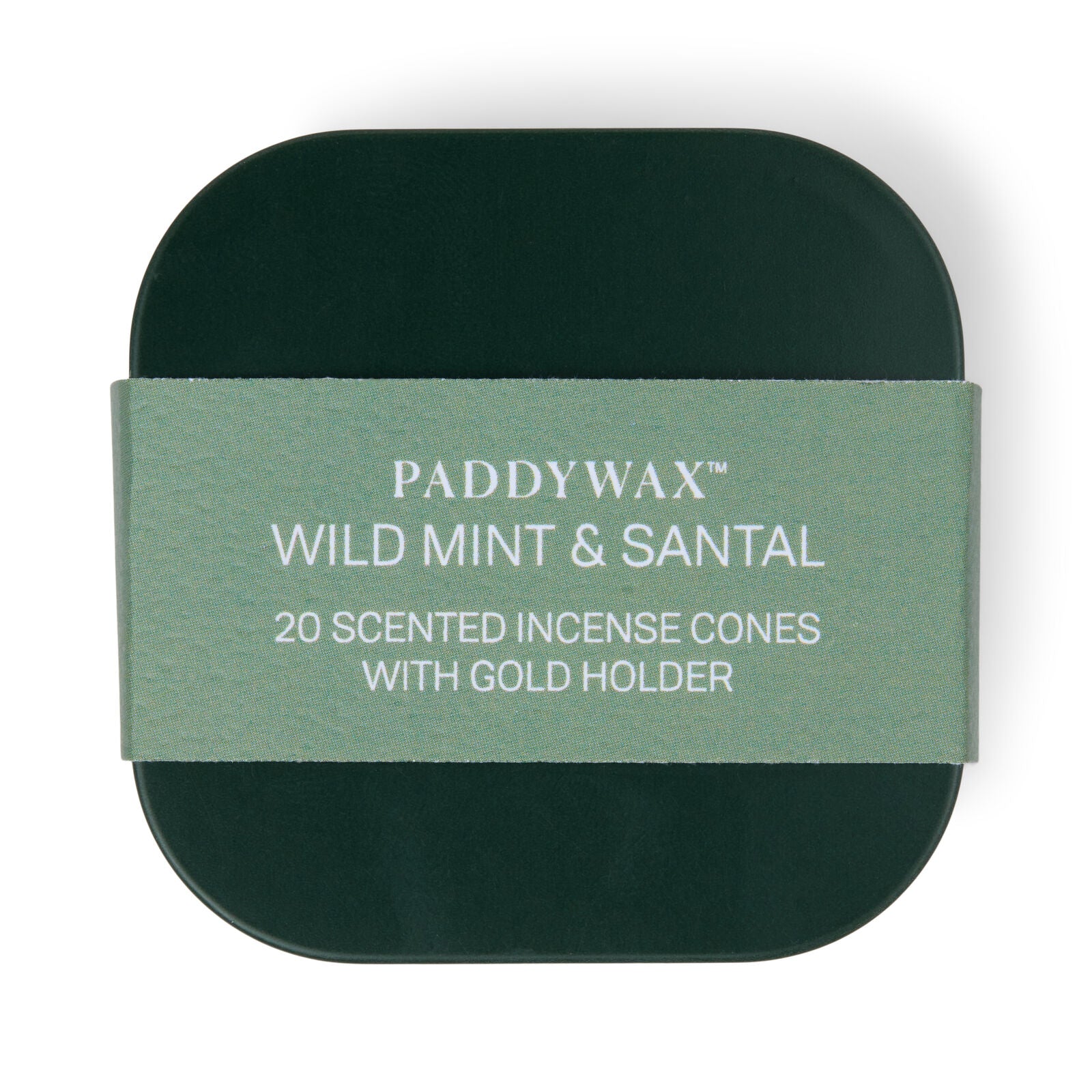 Transform your space with the scent of Wild Mint & Santal. The Paddywax Incense Tin comes with everything you need: 20 rich incense cones and a stylish gold holder, all neatly packaged in a reusable cube-shaped metal tin. It's an ideal choice for a thoughtful gift, a travel companion, or simply a way to beautifully store your incense.