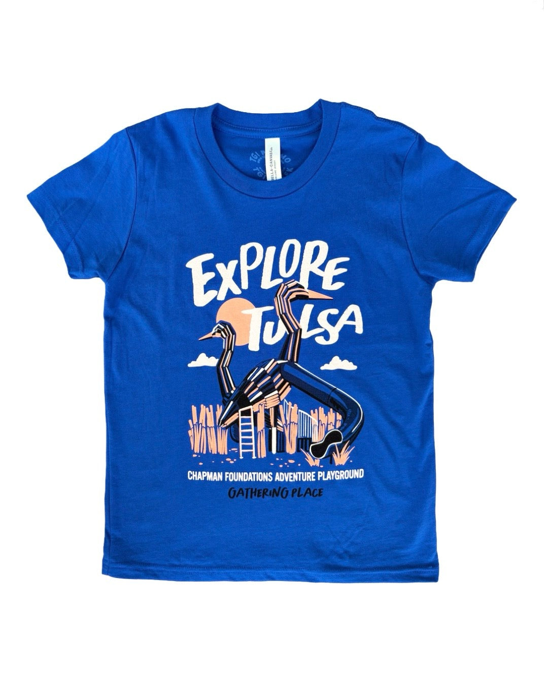 Visitors of Tulsa's award-winning public park, Gathering Place, know its star attraction is Chapman Foundation Adventure Playground! This 5-acre playground features activities designed for kids of all ages, the most memorable of which are the iconic Blue Heron slides, modeled after Oklahoma's largest native bird!
