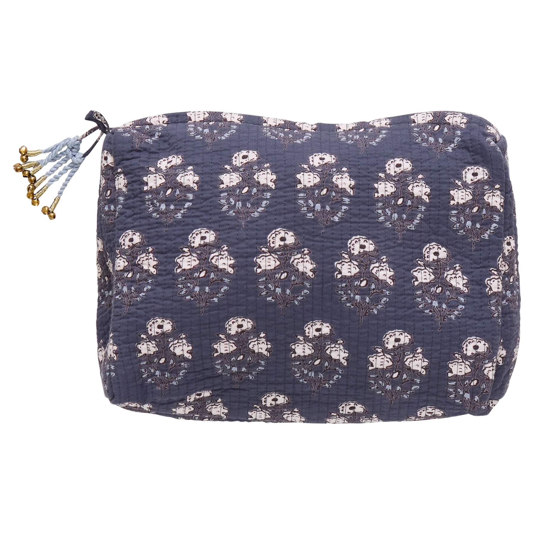 Keep your essentials tucked away in this adorable Quilted Pouch in Navy Strawflower Block Print. Softly quilted cotton and a zip-top closure make it as practical as it is pretty, and a sweet companion to your Strawflower favorites.
