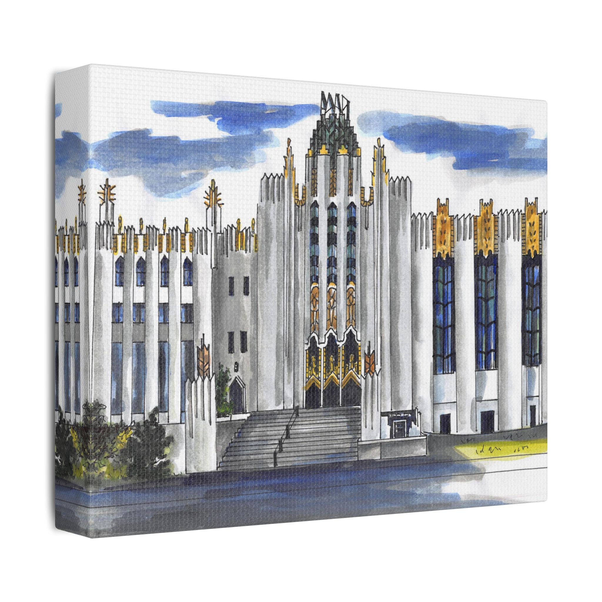 Art that brings Route 66 nostalgia into any room. The artwork captures Tulsa’s green arched bridge and classic road signs in a lively, hand-drawn style—selective color details pop against soft pencil shading. Lightweight yet sturdy, the print is mounted on a wooden inner frame with metallic hanging mounts ready for wall display. The satin polyester surface gives a subtle sheen that deepens colors without glare, so the blue-and-red "Tulsa" sign and Route 66 shield stand out while the sketched cars and clouds retain delicate texture. Made and assembled in the UK with REACH-certified inks and a lifelong colour guarantee, this canvas is meant to sit indoors and hold its vibrancy for generations.