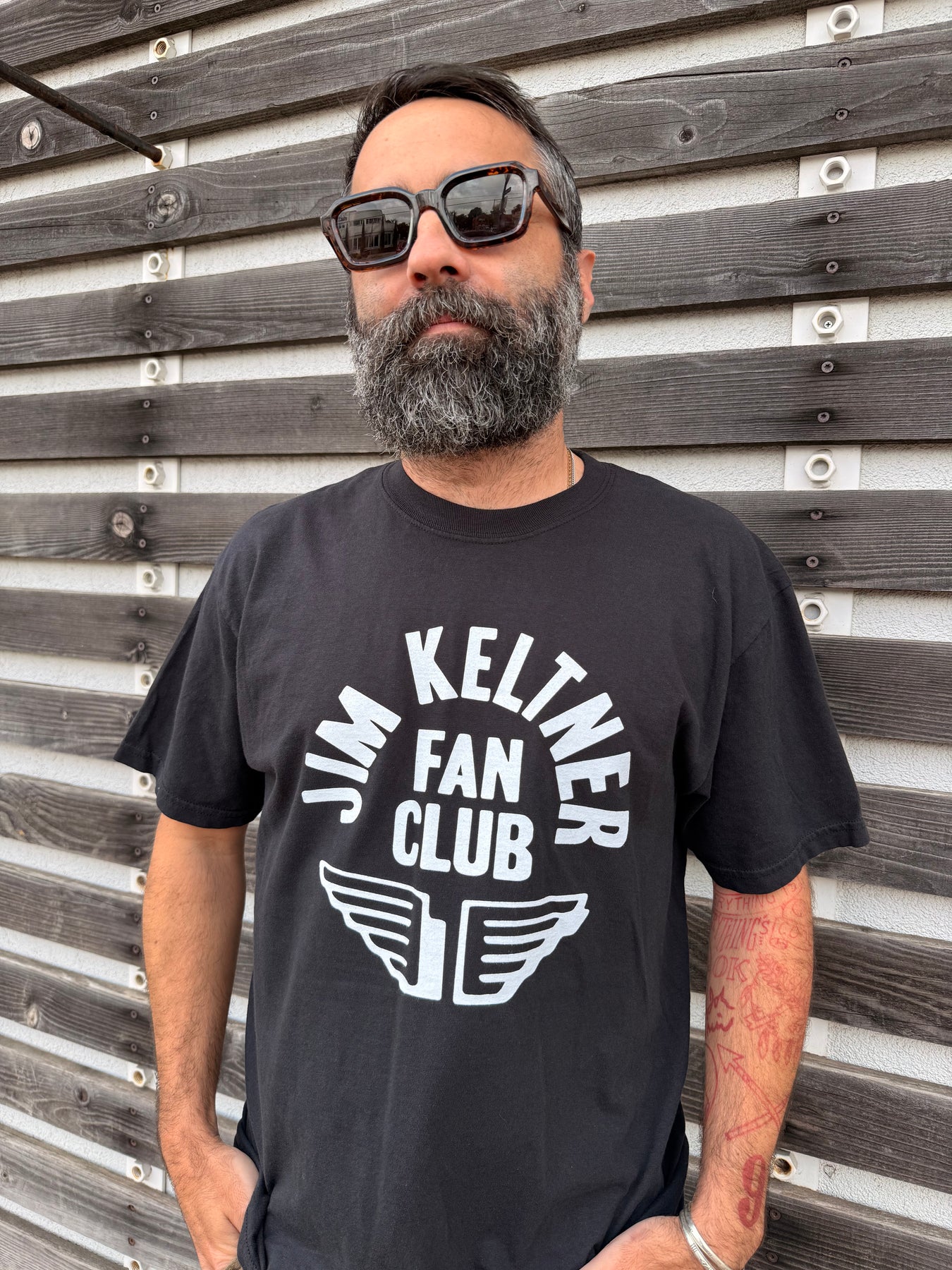 The Jim Keltner Fan Club was first advertised in 1973 on the back of George Harrison’s Living in the Material Worldalbum—a playful response to Paul McCartney’s “Wings Fun Club.” George figured, if he was going to start a fan club, it might as well be for someone he was a fan of. He wore and handed out Jim Keltner Fan Club buttons often—he even gave one to my dad when my dad visited George’s house with Bob Dylan in 1981.