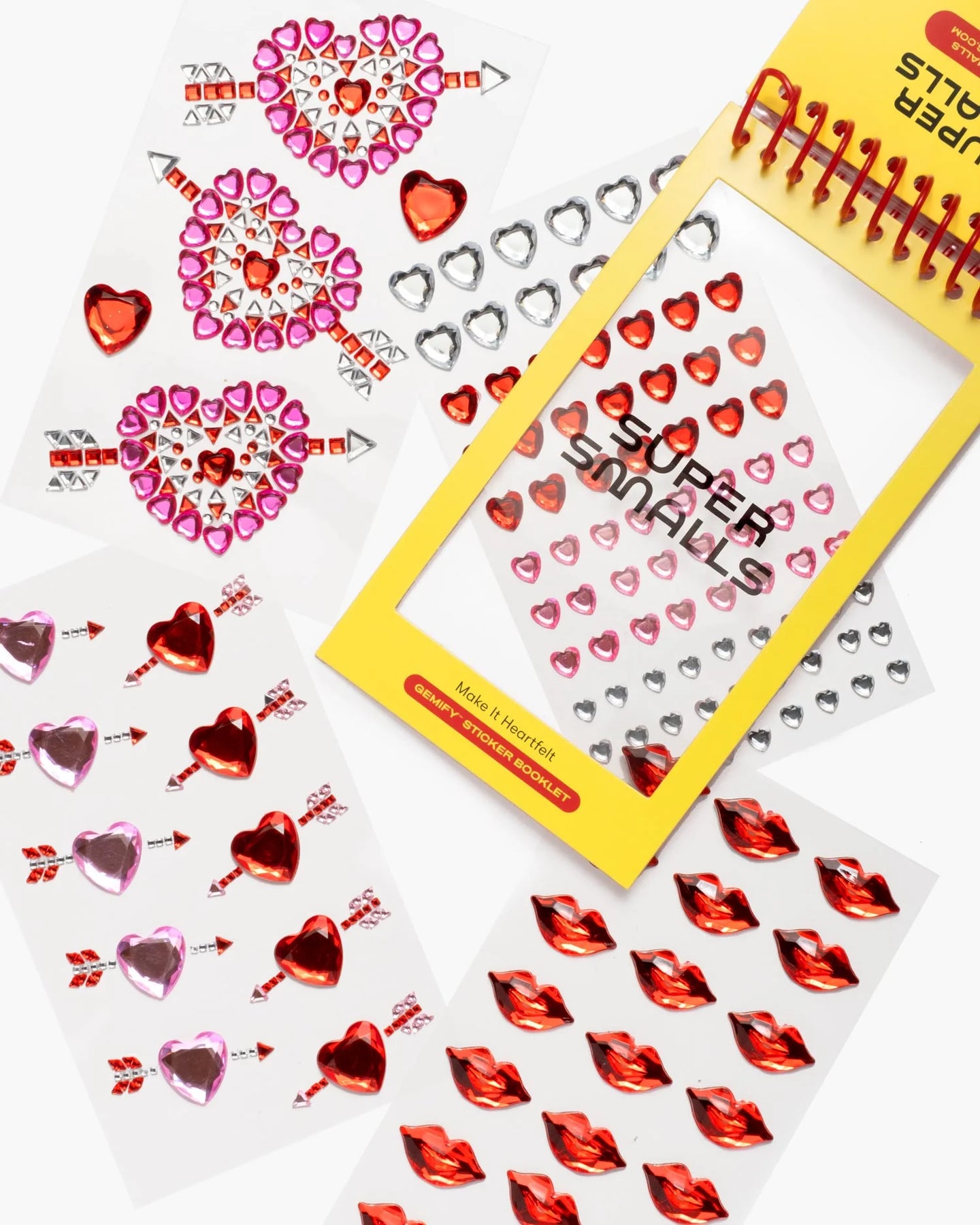 - Includes 4 sheets packed with gem hearts, sparkling lips, and Cupid’s arrows