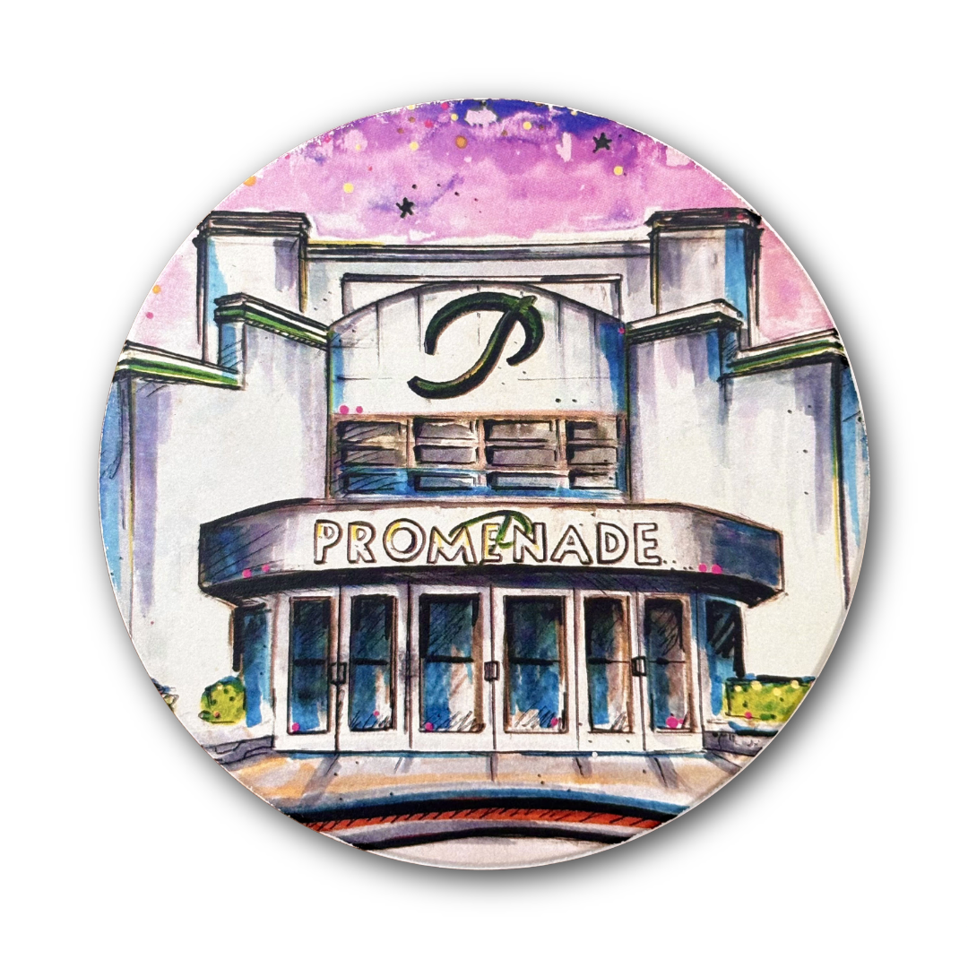 Step back into the heyday of escalators, anchor stores, and after-school hangouts with this Promenade Mall Coaster, inspired by one of Tulsa’s most iconic shopping destinations. Once home to big-name retailers, a movie theater, and the beloved glass elevator, Promenade Mall was a staple of Tulsa life from the 1980s through the early 2000s.