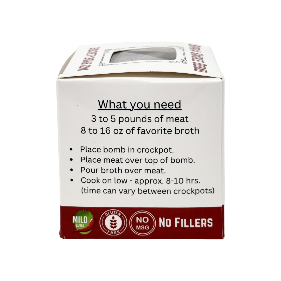 Experience the vibrant flavors of Mexico with the "Birria Smoke Bomb". Busting with chili peppers, cumin, cloves and oregano, this authentic blend infuses your tacos with layers of rich, earthy goodness. Just add your choice of protein and savor the irresistible aroma and taste of Birria tacos, perfect for any fiesta or family.